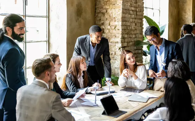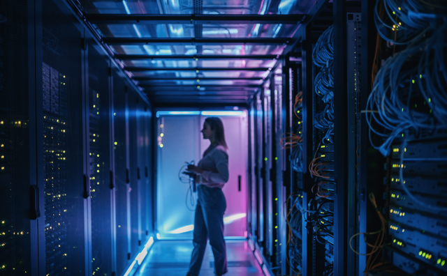 Woman and Men Talking in Data Center